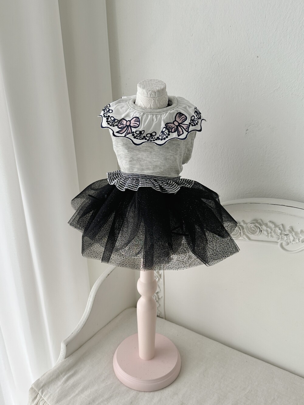 Ribbone kitty t-shirt ( Gray )
