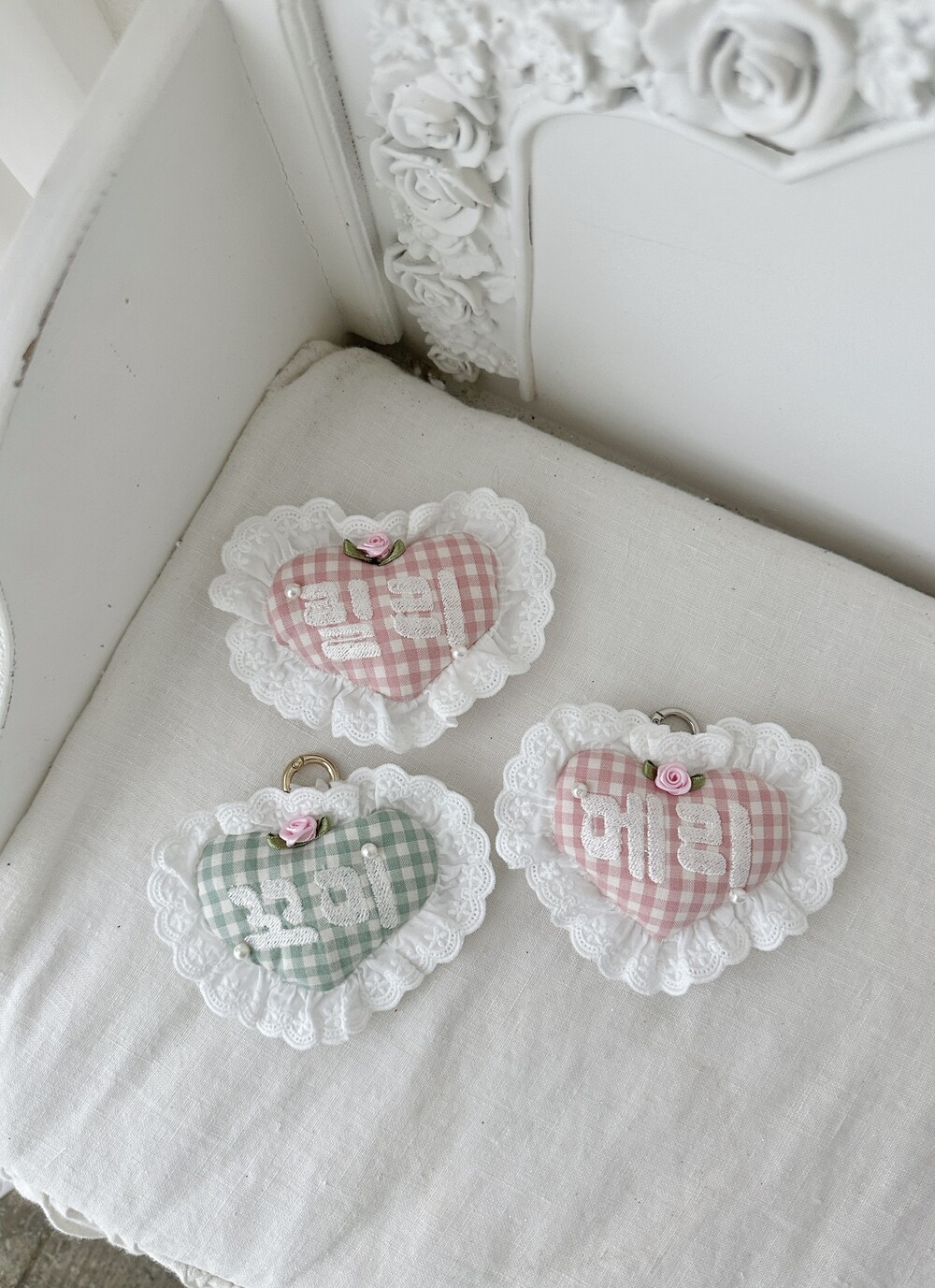 레이스 프릴과 도톰한 하트 쿠션 디자인으로