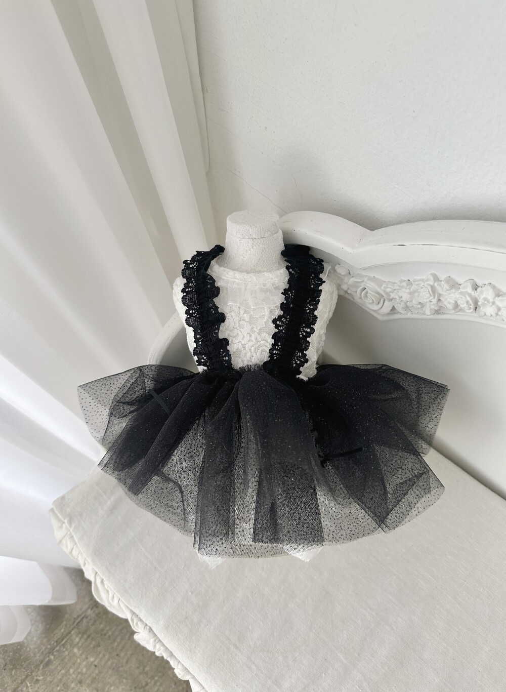 가볍게 흐르는 시스루 프릴이 우아함을 더해줍니다.