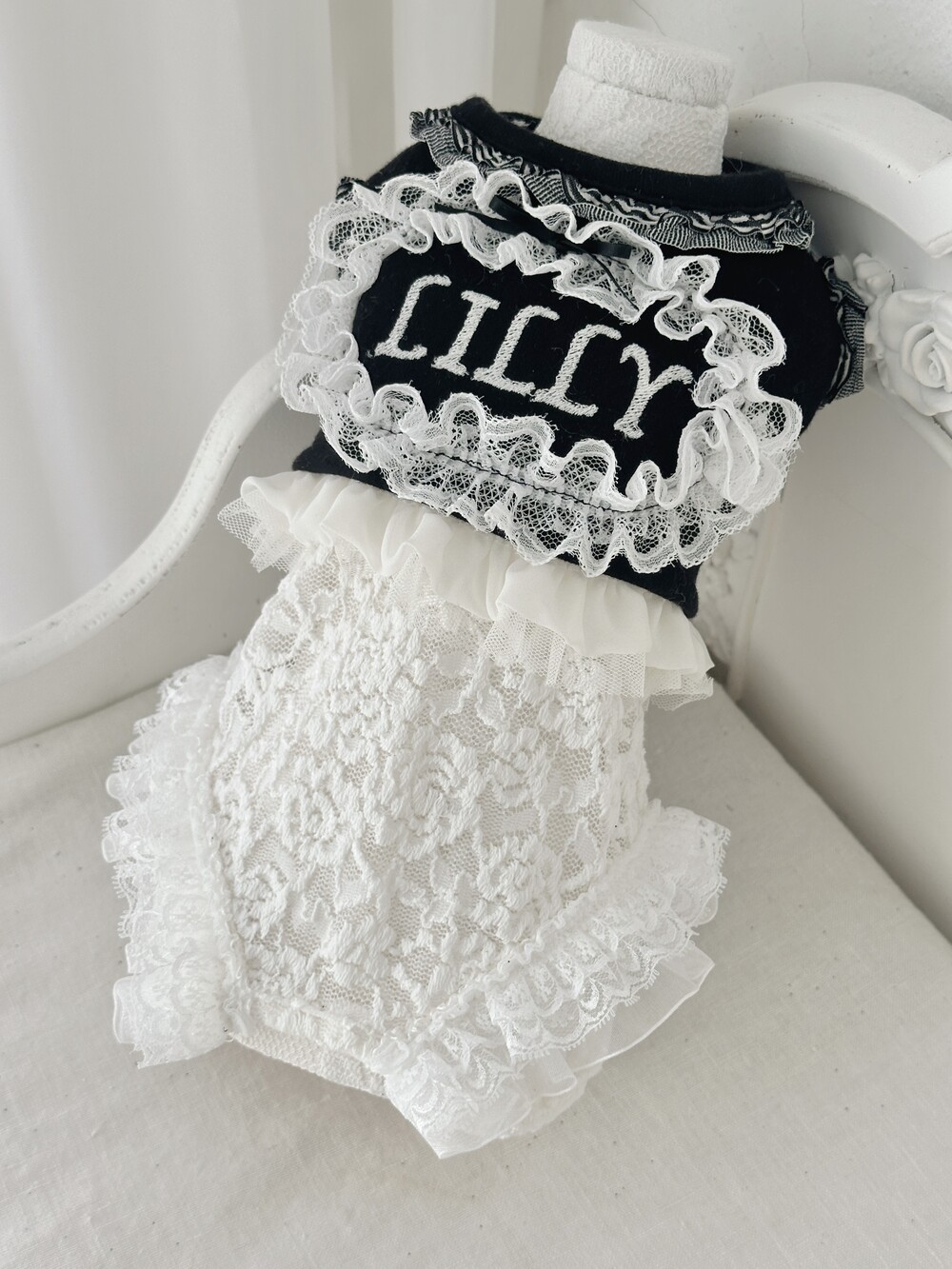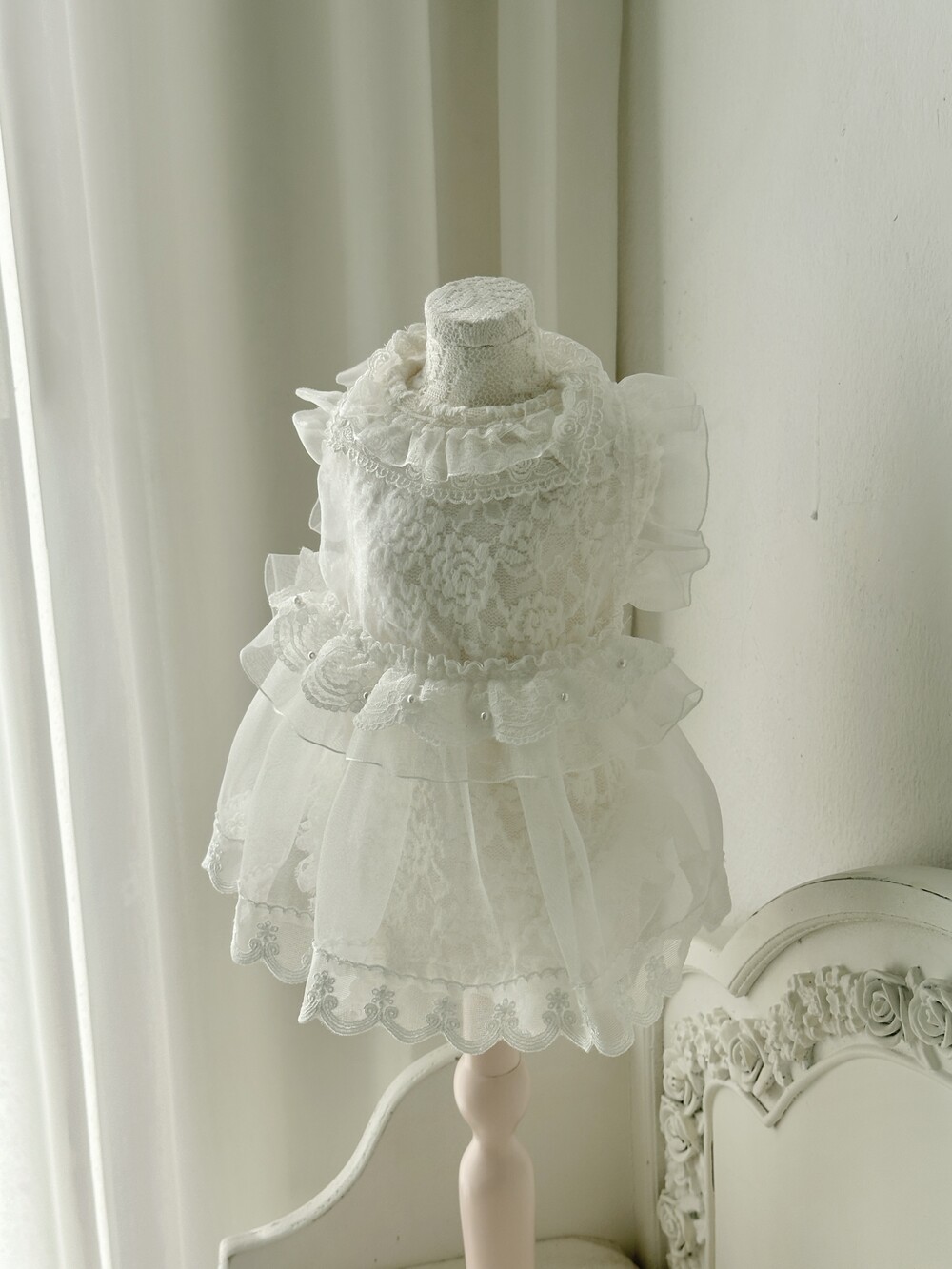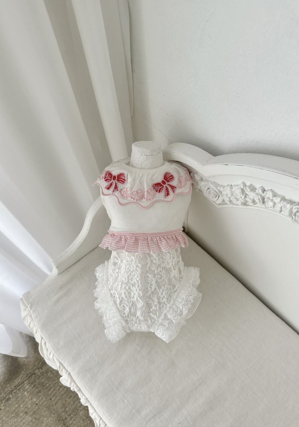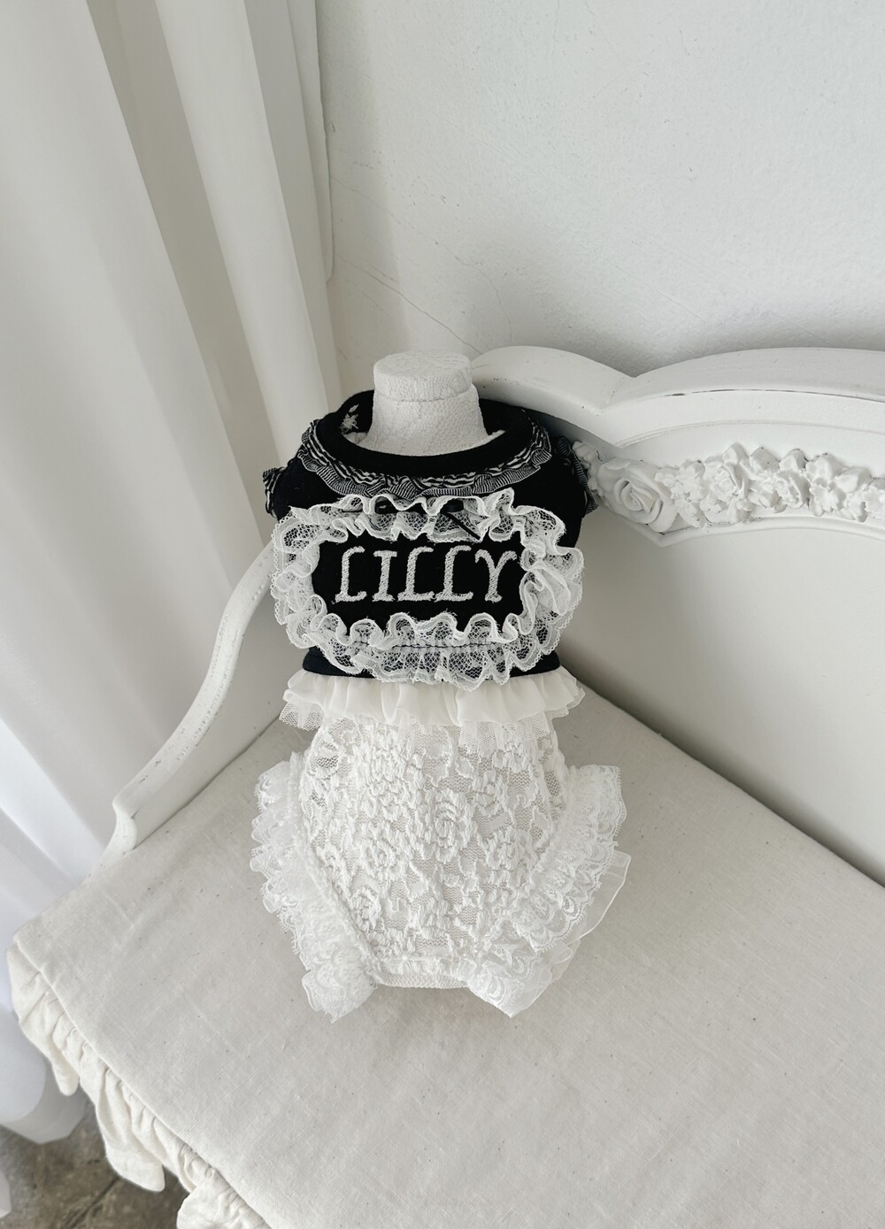- 밑단 레이스 + 오간자 프릴 레이어드