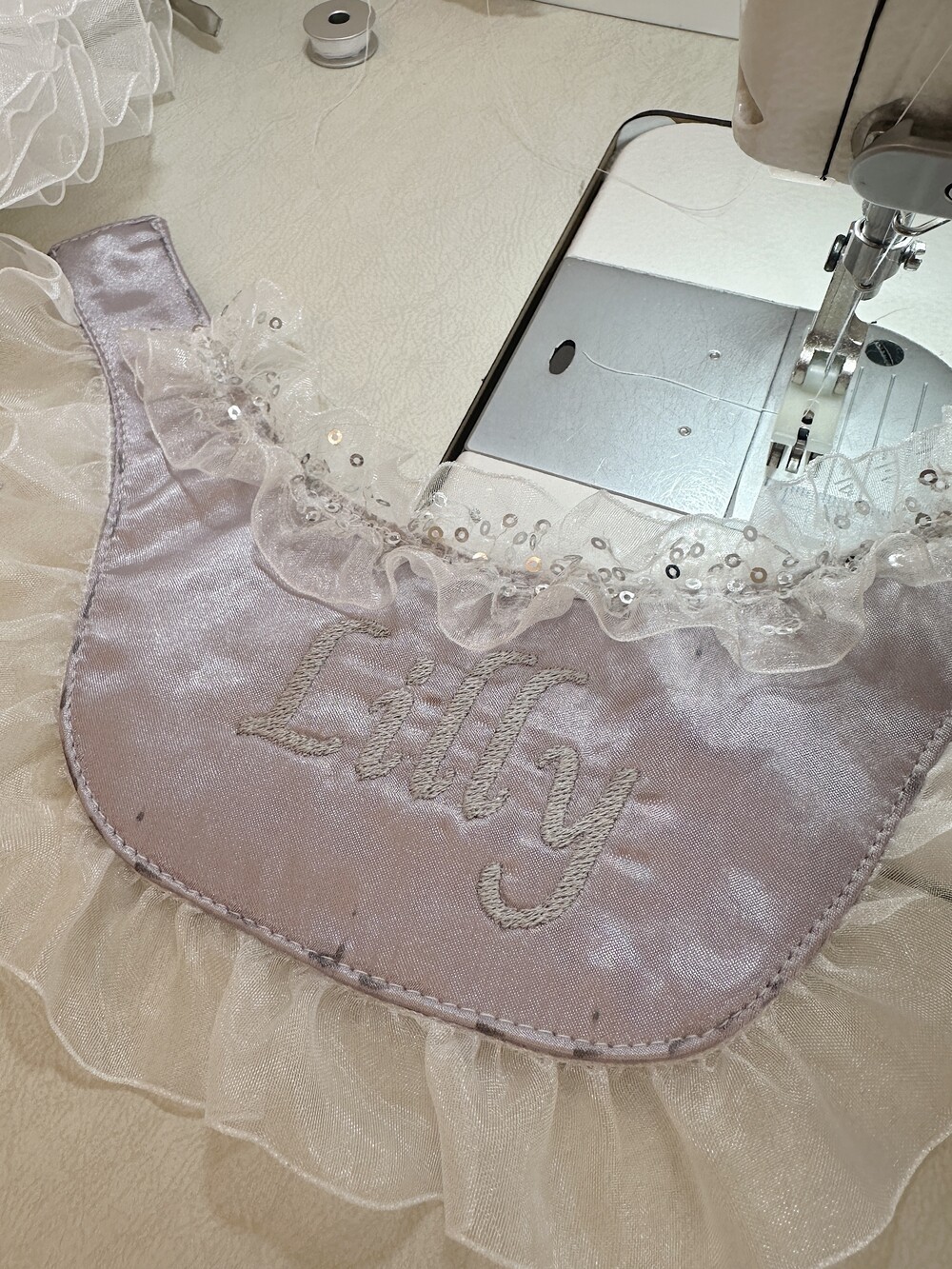 νμ±ν ν릴과 λ μ΄μ€λ₯Ό λν΄ μμ±λ Satin Name Cape