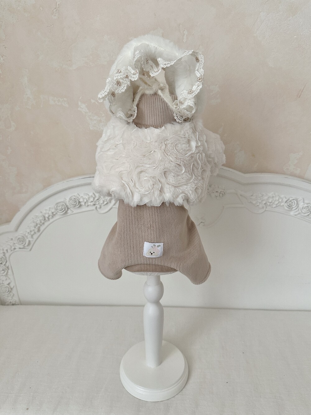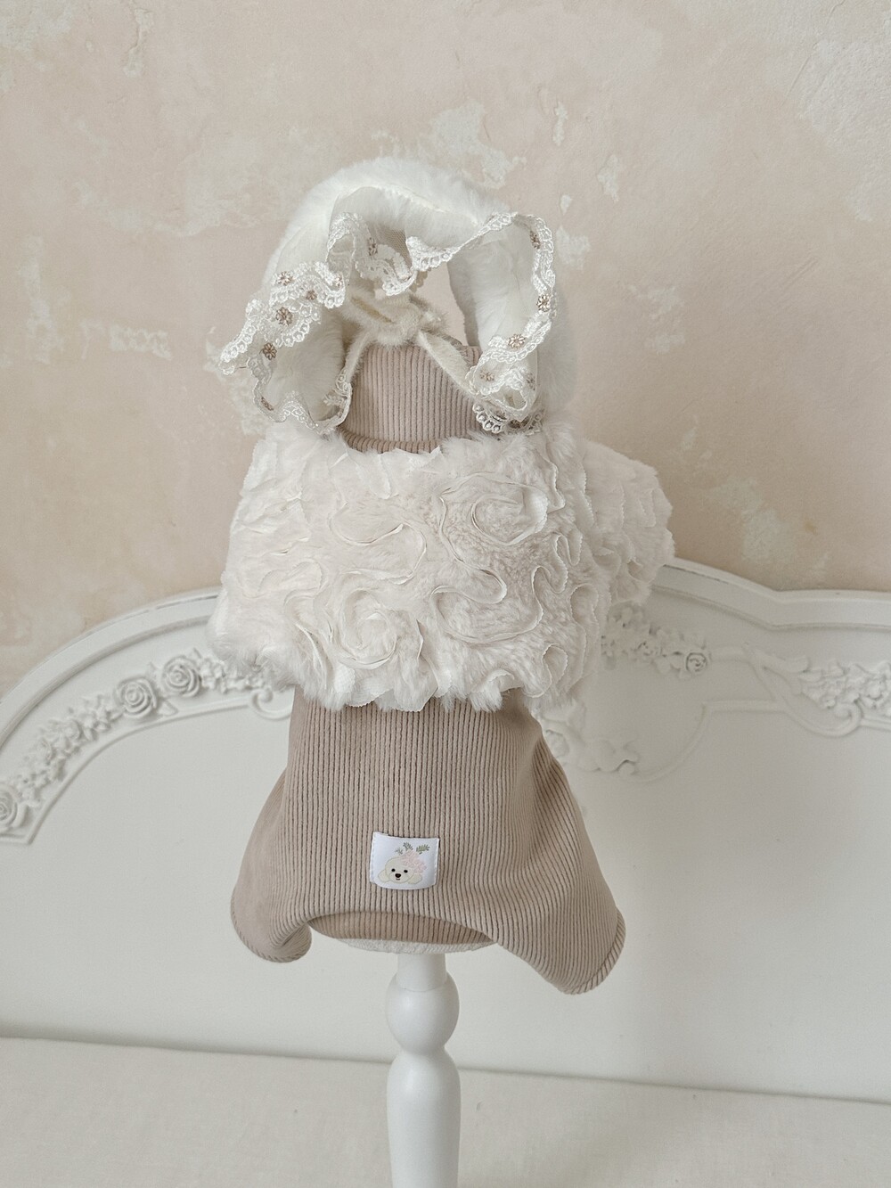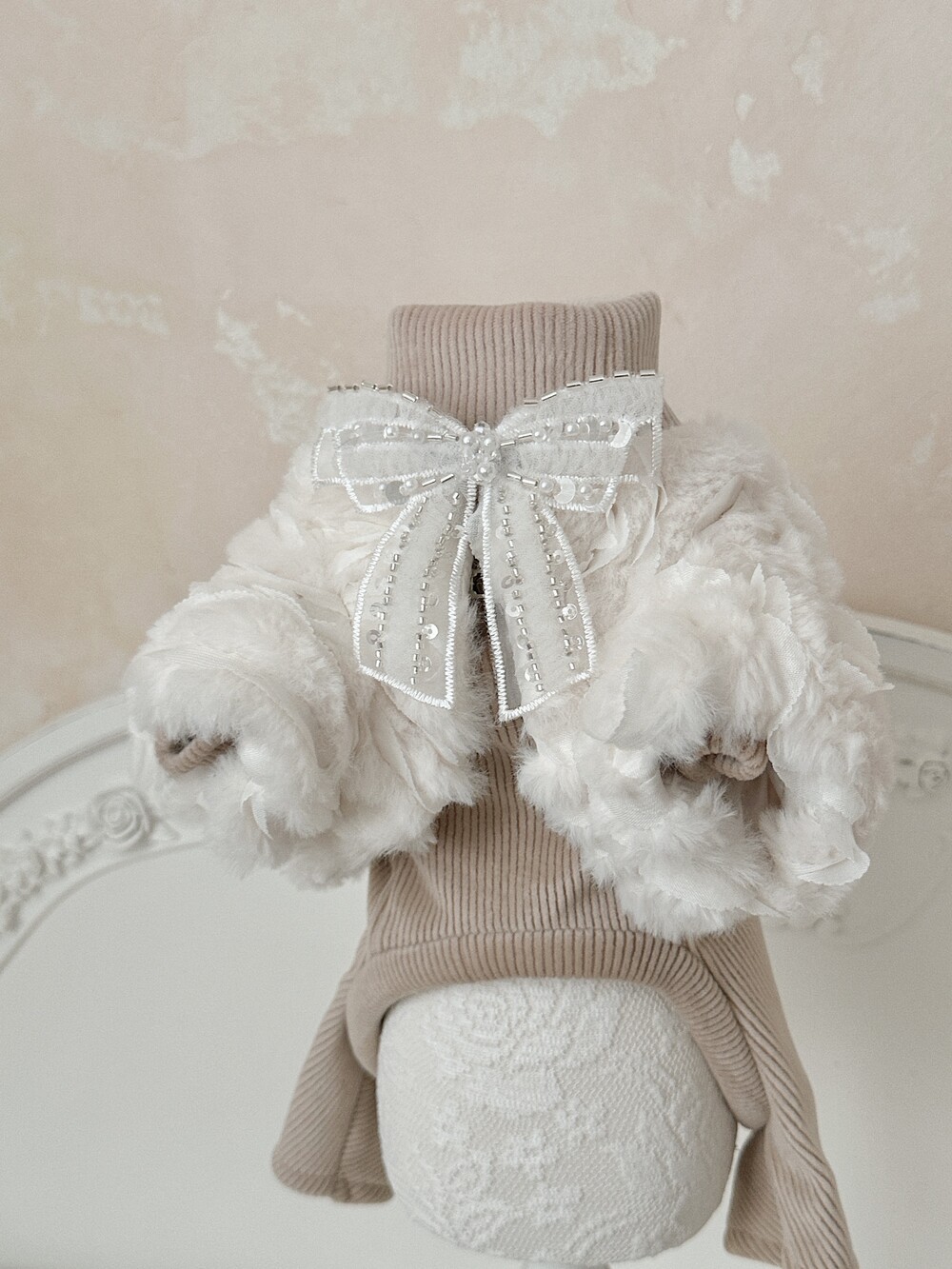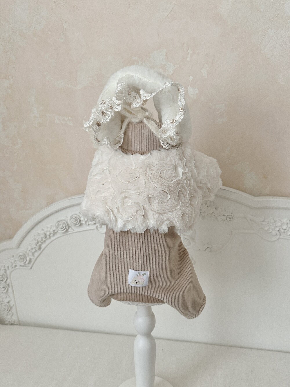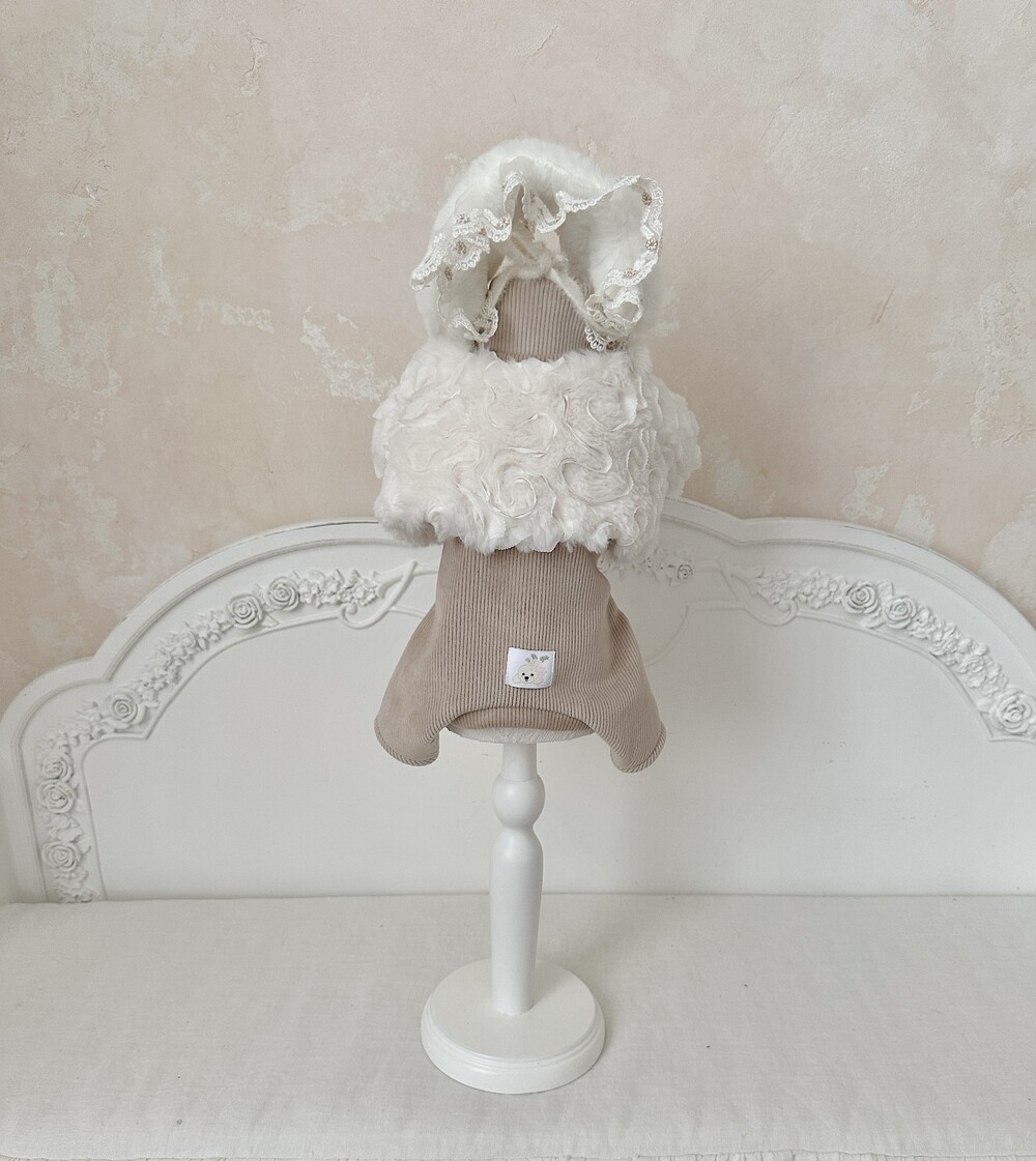 -> Bling fur bonnet / Angora ribbed fleece turtleneck (All-in-one) (beige)μ ν¨κ» μ½λ
