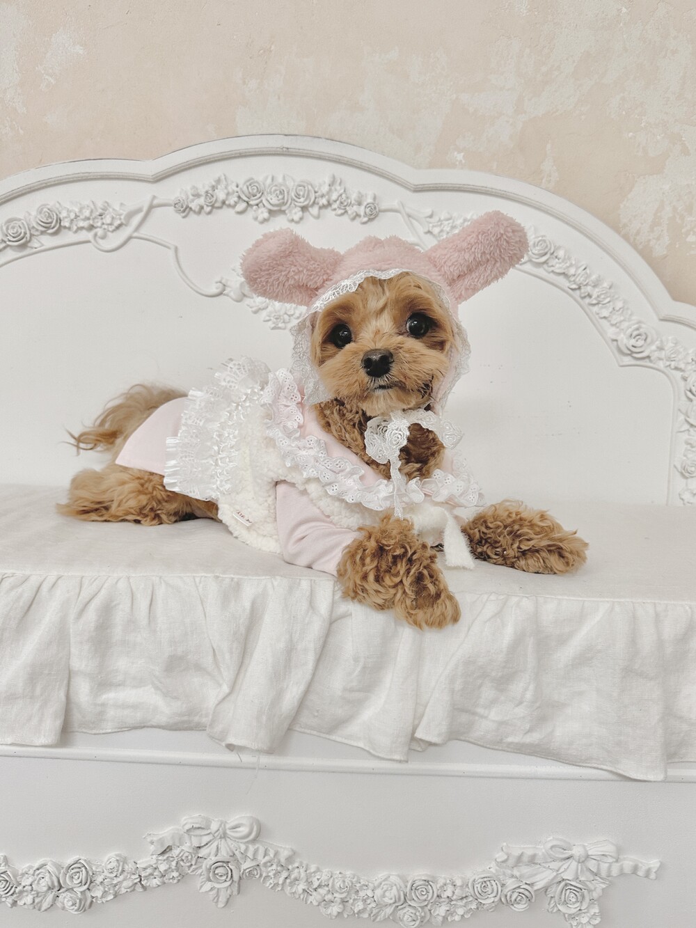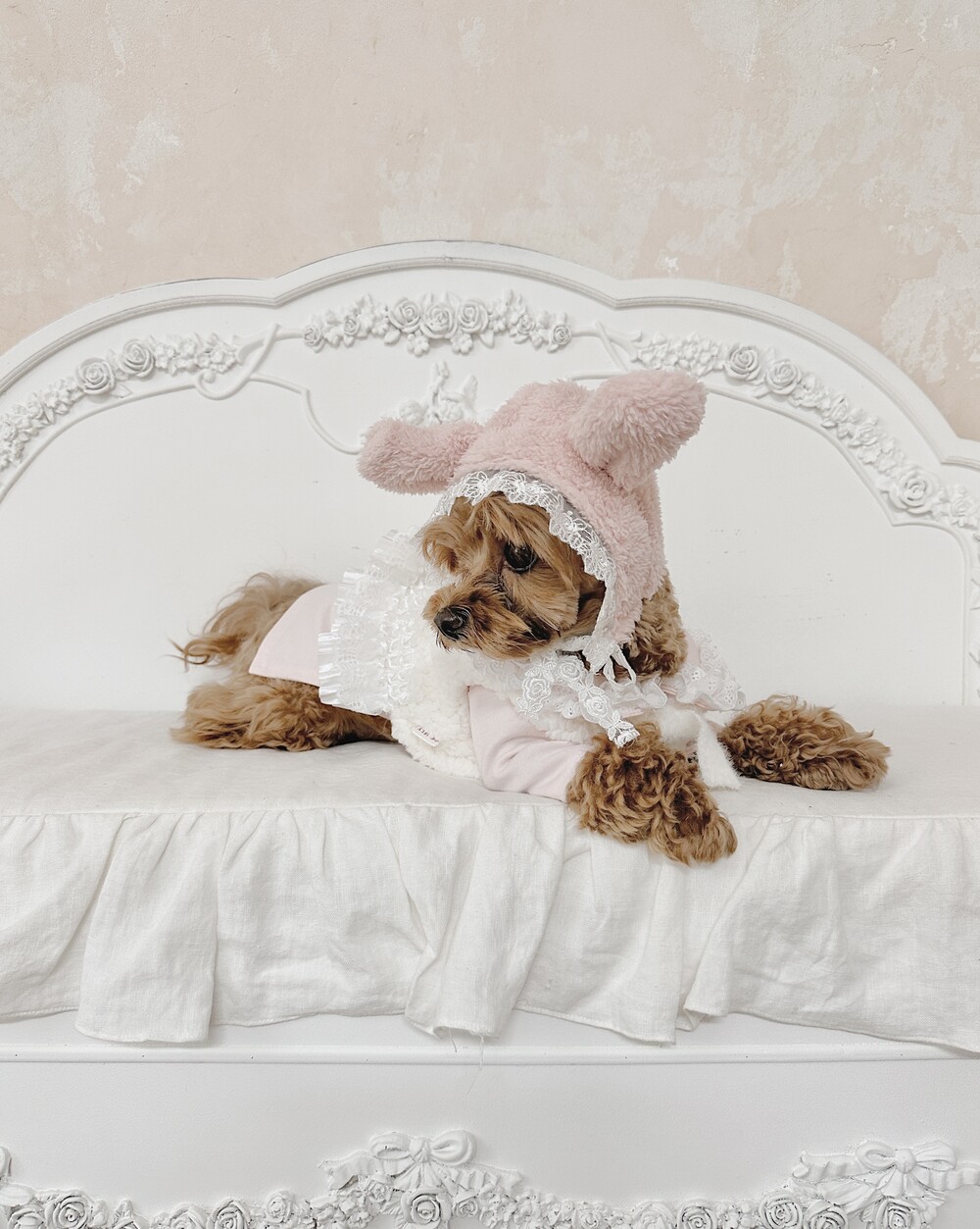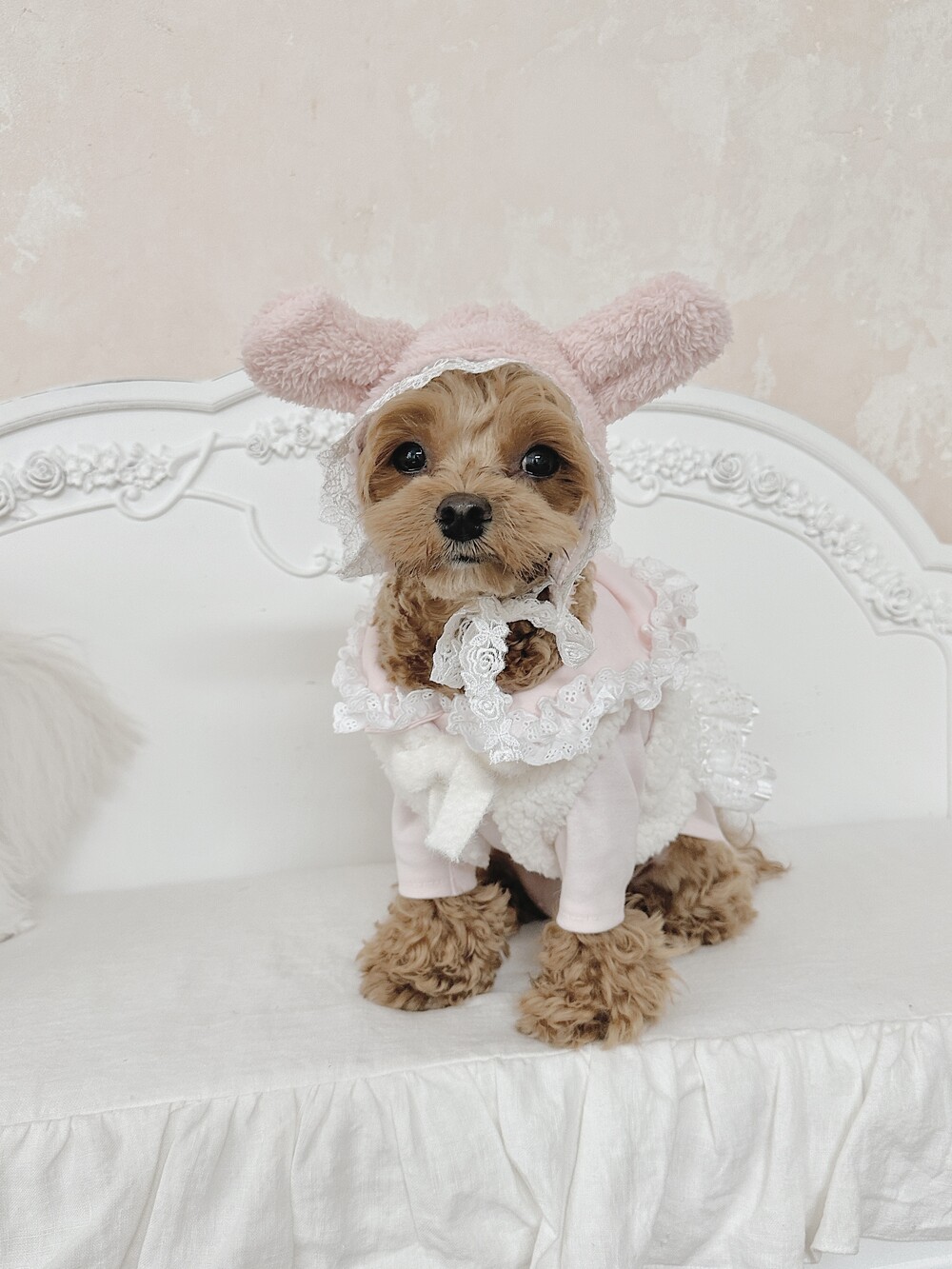 -> Rabbit bonnet (pink) + lace wool boleroμ μ½λ