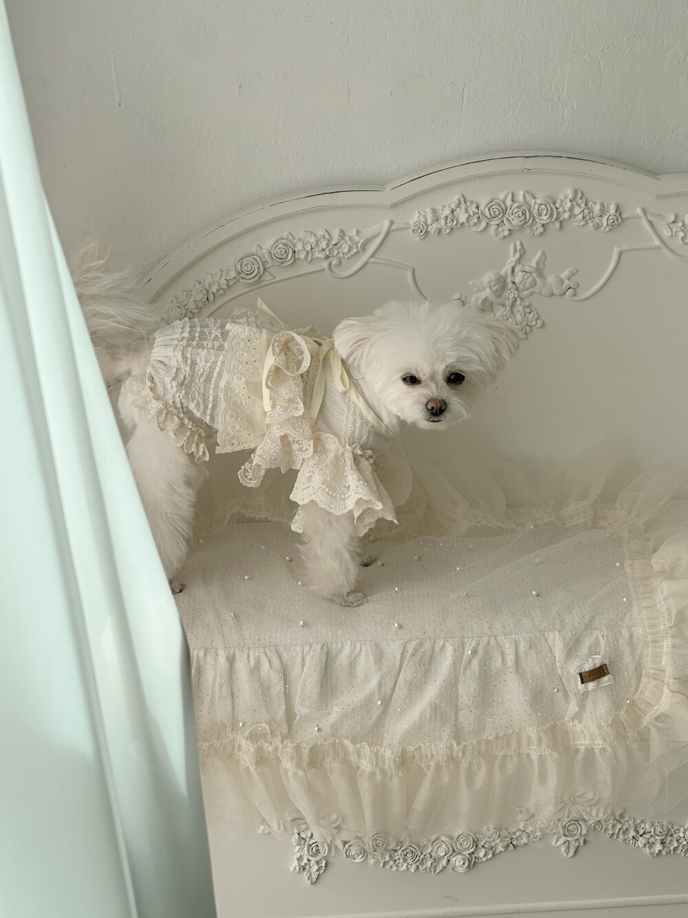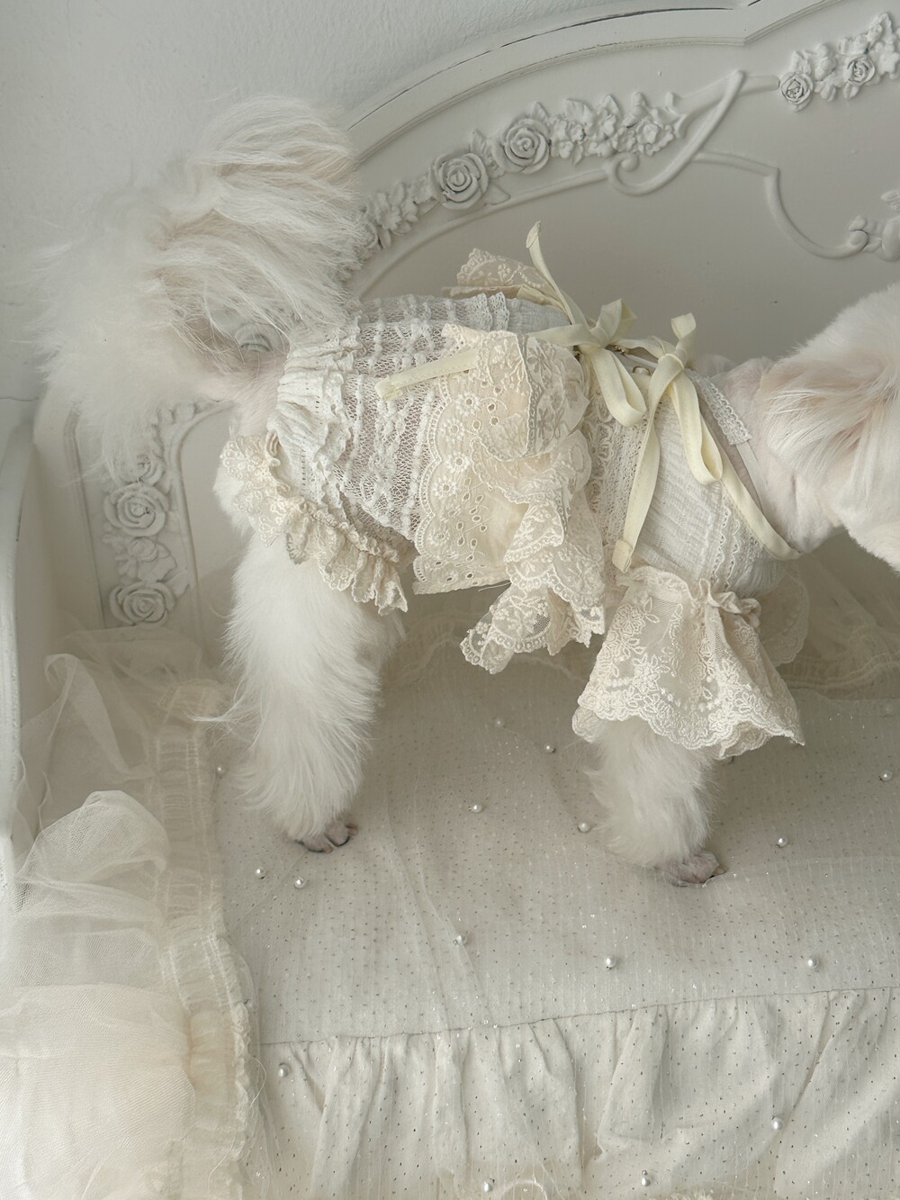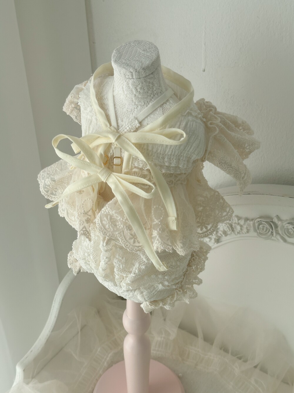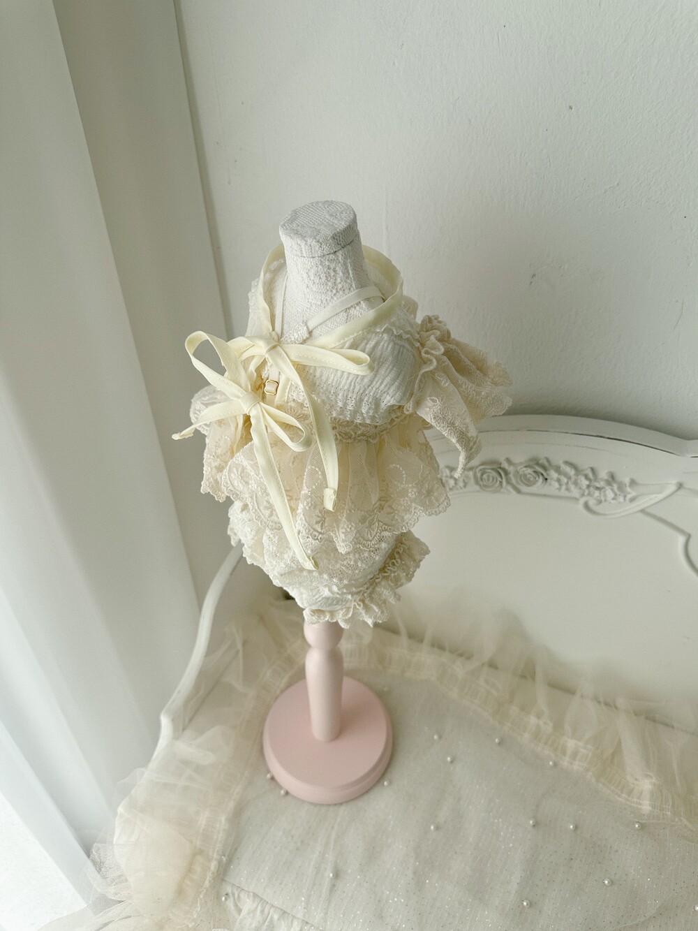 Cream ribbone lace cardigan (π€3μ°¨ 리μ€λπ€)