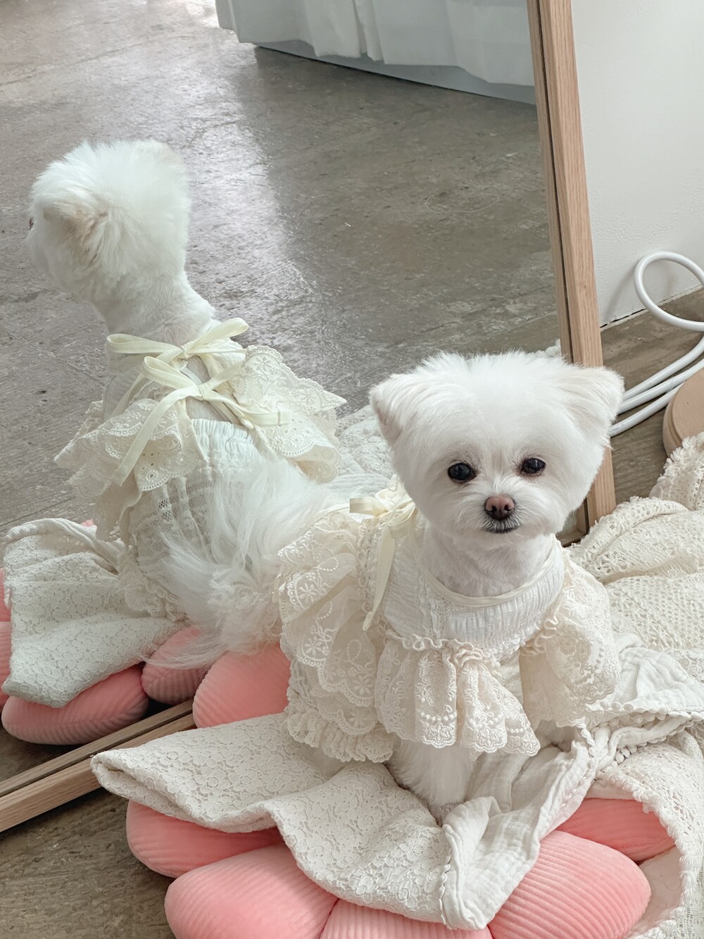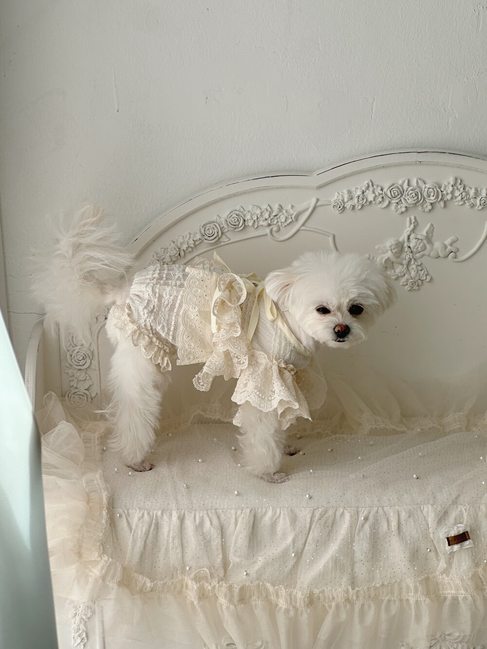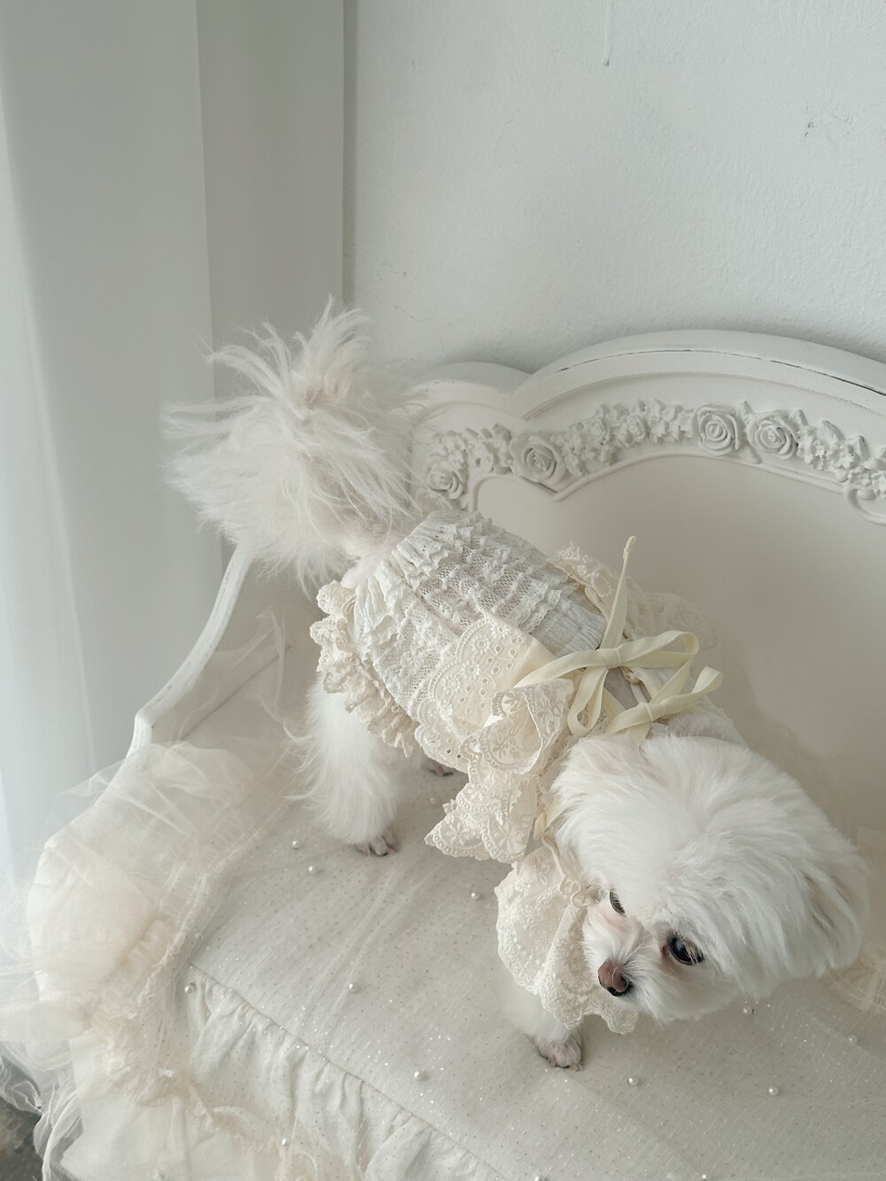 Cream ribbone lace cardigan (π€3μ°¨ 리μ€λπ€)