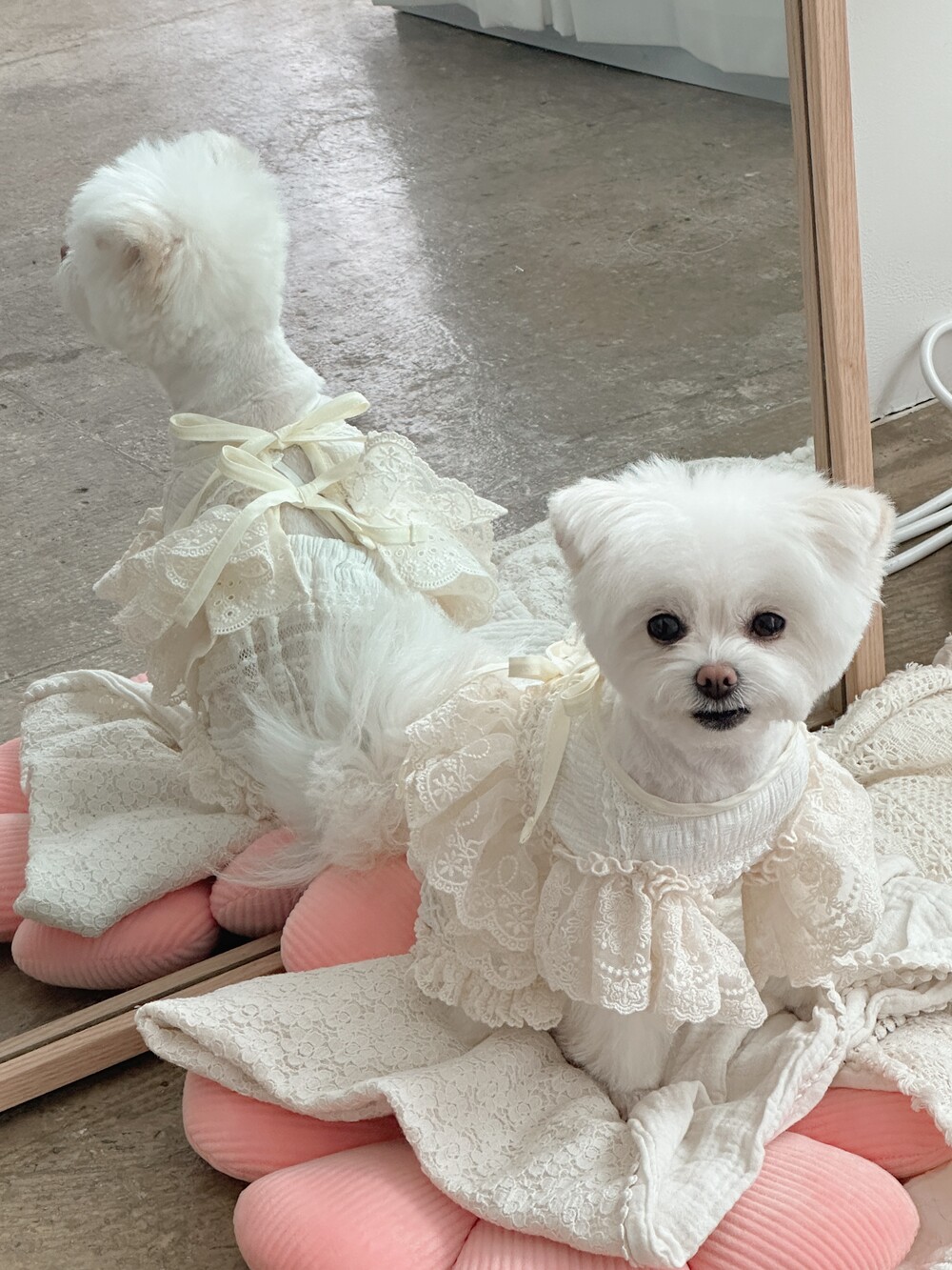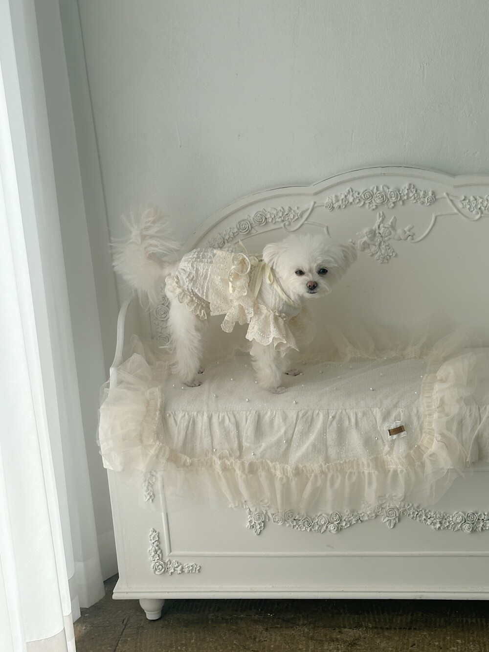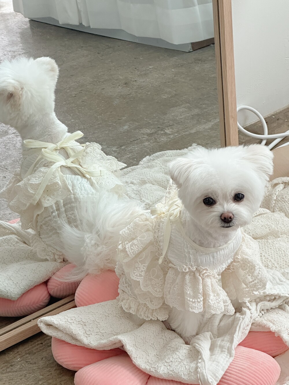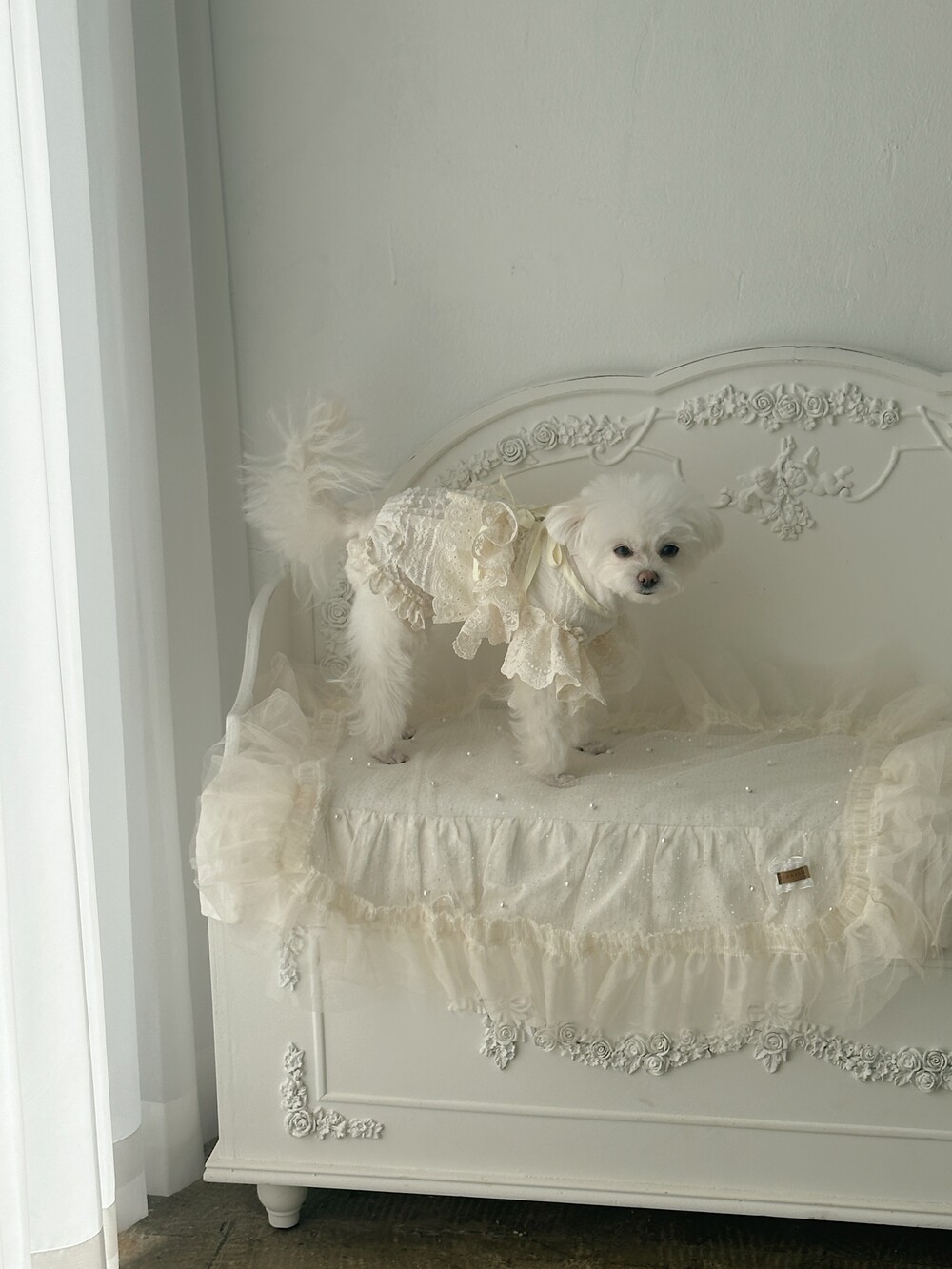 Cream ribbone lace cardigan (π€3μ°¨ 리μ€λπ€)